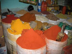 Chili powder (also spelled chile powder) is a generic name for any powdered spice mix composed chiefly of chili peppers, most commonly either red peppers or cayenne peppers, which are both of the species Capsicum annuum. The spice mix may simply be pure powdered chilis, or it may have other additives, especially cumin, oregano, and garlic. [1][2] Some mixes may even include black pepper, cinnamon, cloves, coriander, mace, nutmeg, or turmeric. Template:Fact As a result of the various different potential additives, the spiciness of any given chili powder is incredibly variable. As a rule, the purer the chili powder is, the more spicy it is.