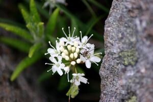 Labrador tea, is a name commonly applied to two species: Ledum palustre (Northern Labrador Tea, also known as Rhododendron tomentosum) and Ledum groenlandicum (Bog Labrador Tea). In Labrador itself, Labrador Tea is also frequently called Indian Tea. Both are plants in the Heath family (Ericaceae) with strongly aromatic leaves that can be used to make a very palatable herbal tea. Labrador tea has been a favorite beverage among Athabaskan and Eskimo people for many years. Labrador tea is a low shrub with evergreen leaves. The leaves are smooth on top, fuzzy white to red-brown underneath. The tiny white flowers grow in hemispherical clusters and are very fragrant and sticky and highly attractive to bees. In large doses Labrador tea can cause drowsiness, stomach ache, and act as a laxative. Use in moderation.