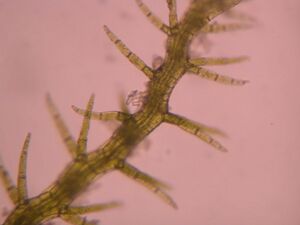 They can be distinguished from the apparently similar mosses by their single celled rhizoids. Other differences are not universal for all mosses and all liverworts, but the lack of clearly differentiated stem and leaves, the presence of deeply lobed or segmented leaves, and the presence of leaves arranged in three ranks all point to the plant being a liverwort. Confirmation of the identifiaction of a moss or a leafy liverwort can only be performed with certainty by micr oscopical investigation.