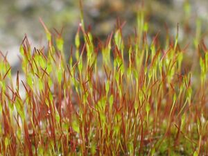 Mosses are small, soft plants that are typically 1–10 cm tall, or occasionally more. They commonly grow close together in clumps or mats in damp or shady locations. They do not have flowers or seeds, and their simple leaves cover the thin wiry stems. At certain times mosses produces spore capsules which may appear as beak-like capsules borne aloft on thin stalks.