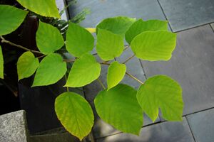 The bark is composed of very strong fibres, and can be used for making high-quality paper. (See: Japanese tissue and Japanese paper.) The tender leaves and twigs can be used to feed deer, and the tree is sometimes nicknamed the "Deer's Tree".