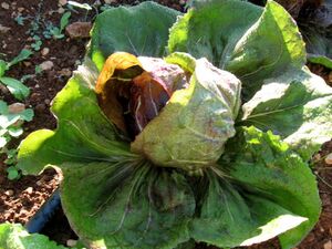 Radicchio is easy to grow but performs best in a spring (USDA Zone 8 and above) and fall (everywhere) garden. It prefers more frequent but not deep watering, the amount of water varying based on soil type. Infrequent watering will lead to a more bitter tasting leaf. However, for fall crops the flavor is changed predominantly by the onset of cold weather (the colder the mellower), which also initiates the heading and reddening process in traditional varieties. There are newer, self-heading varieties whose taste is not yet as good as a traditional variety which has matured through several frosts or freezes (E.g., Alouette). Radicchio matures in approximately three months.