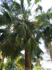 Recently, a new variety of Sabal palmetto has been discovered in South West Florida, Sabal sp. Lisa. The difference between the Sabal Lisa and the Sabal Palmetto in the leaf arrangement. The Sabal Lisa has costapalmate, acute, not pendulous, not filamentose, rigid, not strongly divided, cupped, slightly undulately leaves. This mutation of Sabal palmetto is beginning to be seen in the nursery trade, as it is just as hardy to cold, salt, drought, fire and wind as Sabal palmetto, yet looks more out of the ordinary. Two specimens can be seen in Ft. Myers, Fl at the intersection of Luckett Road and I-75, and many seed is collected and distributed from these specimens. Seeds from Sabal lisa have a 68% chance of becoming true to type, the other 32% develop as Sabal palmetto [2]