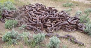 Following the resulting re-establishment of Pinyon woodlands, many ranchers became concerned that these woodlands provided decreased livestock forage. Efforts to clear these woodlands, often using a surplus battleship chain dragged between two bulldozers, peaked in the 1950s, but were subsequently abandoned when no improved forage resulted. The destruction of large areas of Pinyon woodlands in the interests of mining and cattle ranching is seen by many as an act of major ecological and cultural vandalism. Single-leaf Pinyon is also occasionally planted as an ornamental tree and sometimes used as a christmas tree. It is rarely seen in nurseries, because it is difficult to germinate.