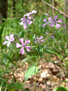 Wild phlox grows 25-50 cm tall with opposite, unstalked leaves 2.5-5 cm in length. The flowers are produced in early spring, 2-4 cm in diameter, with the five-lobed corolla a pale bluish violet or purple in color.