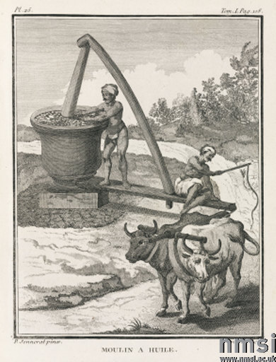 Picture number:10419131 Credit:Science Museum/Science&Society Picture Library Image Caption: Engraving by Poisson published in 1782 after a painting by Pierre Sonnerat (1748-1814), showing men using oxen to press oil from some sort of plant product (probably mustard, according to the uploader). Illustration from Sonnerat's 'Voyage aux Indes Orientales et a la Chine, fait par ordre du roi, depuis 1774 jusqu'en 1781' ('Voyage to the East Indies and China, made by order of the king, from 1774 to 1781'). In Collection of: Science & Society Picture Library Subject(s) > Trade & Industry > Textile Industry |