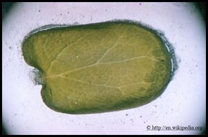 A cotyledon (Greek: κοÏÏ Î»Î·Î´Ïν) is a significant part of the embryo within the seed of a plant. Upon germination, the cotyledon usually becomes the embryonic first leaves of a seedling. The number of cotyledons present is one characteristic used by botanists to classify the flowering plants (angiosperms). Species with one cotyledon are called monocotyledonous (or, "monocots") and placed in the Class Liliopsida. Plants with two embryonic leaves are termed dicotyledonous ("dicots") and placed in the Class Magnoliopsida.