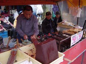 Azuki bean paste being used as a filling for taiyaki in Kyoto, Japan.