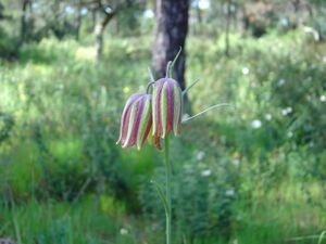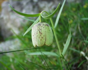 F. agrestis, Greene. Bulbs very deep-seated: sts. 1-1 ½ ft.: lvs. 8-12, oblong-lanceolate to linear-lanceolate: fls. 3-8, on abruptly recurved pedicels, yellowish green, with prominent midnerve on each segm. Calif.—Said by Purdy to occur in 2 forms, one a dainty plant a few inches high with fls. having light green or yellow base- color and heavily lined with brown (Mendocino Co.): the other a foot or two kill and similarly marked, so fetid as to be called "stink bells" (edge of .San Joaquin Valley, Contra Costa Co.). Probably not in cult.—F. askabadensis, Mich. St. about 3 ft.: upper lvs. linear-lanceolate, whorled: fls. 5-8, hanging amongst the uppermost lvs.. about 1 in. long, bell-shaped, pale yellow-green. Cent. Asia. B.M. 7850. G.C. III. 31:238; 45:184. Gn. 01, p. 256. G.M. 45:745. R.H. 1903:180. J.H. III. 44:293. F. S. R. 1:134.— F. conica, Hort. Lvs. in a rosette: fls. bell-shaped, pale yellow outside and bright yellow inside. Greece.—F. pontica, Wahl. St. tall, 1 ½ ft., leafy at middle, the lvs. broadly lanceolate, lower ones opposite: fls. yellow-green, margined and tipped red, the segms. bearing nearly orbicular nectaries. Asia Minor. Gn.W. 21:407.—F. tuntiina, Heldr. St. 8-10 in.: lvs. long and glaucous: fls. 4-6, bell- shaped, about 1 in. across, intense dark maroon. Greece. Gn.W. 23:435.—F. ziihnii, Hort. Fls. bell-shaped, rather large, brown, checkered with green inside and streaked with yellow outside.