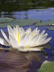 Nymphaea odorata, also known as the Fragrant Water Lily and Beaver Root, is a flower belonging to the genus Nymphaea. It can commonly be found in lake shallows, ponds, and permanent slow moving waters throughout North America where it ranges from Central America to northern Canada. It is cultivated in aquatic gardens as an ornamental plant and it easily becomes a noxious weed. It is invasive and weedy on the west coast of North America.