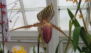 - Paphiopedilum × burbidgei (P. dayanum × P. javanicum var. virens) (Borneo).