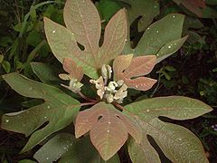 Sassafras albidum (Sassafras, White Sassafras, Red Sassafras, or Silky Sassafras) is a species of Sassafras native to eastern North America. It occurs throughout the eastern deciduous forest habitat type, at altitudes of sea level up to 1,500 m.[1][2][3]
